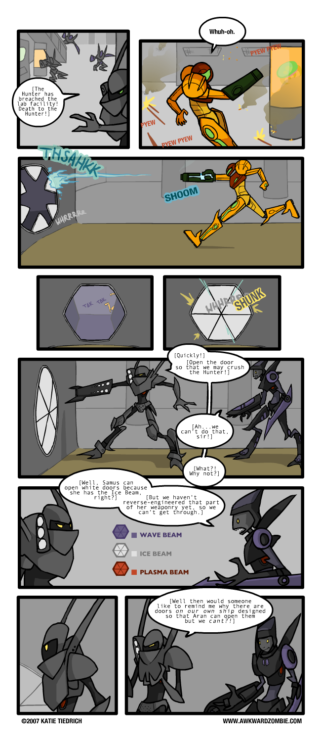 greeaaat), and I remembered something that kinda bothered me about the first Metroid Prime. There are doors on the Space Pirate frigate Orpheon only accessible with some of Samus's
