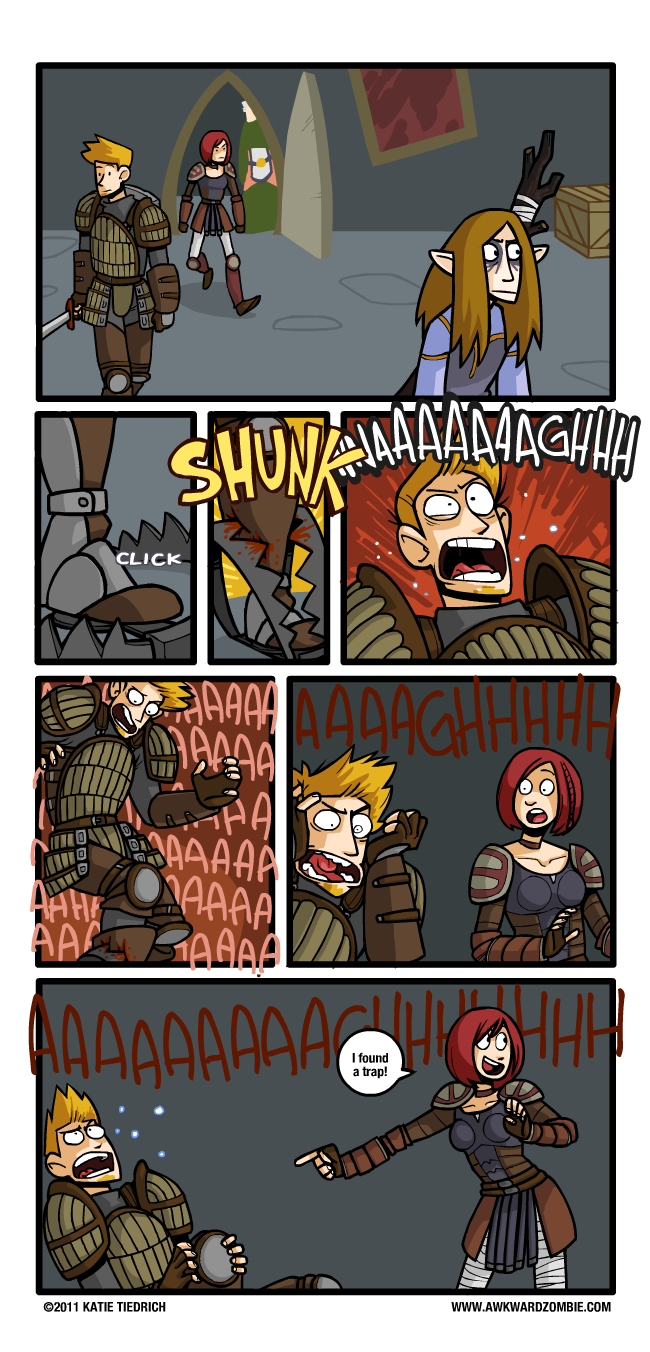 Actually, the characters in Dragon Age: Origins really didn't seem that put off by stepping in bear traps; they would sort of impatiently fidget until the thing would let go and the blood clouds would stop discharging from their mangled legs. It's really more of an annoyance than anything else, especially when my rogue would fail to detect a trap until someone was already knee-deep in it.