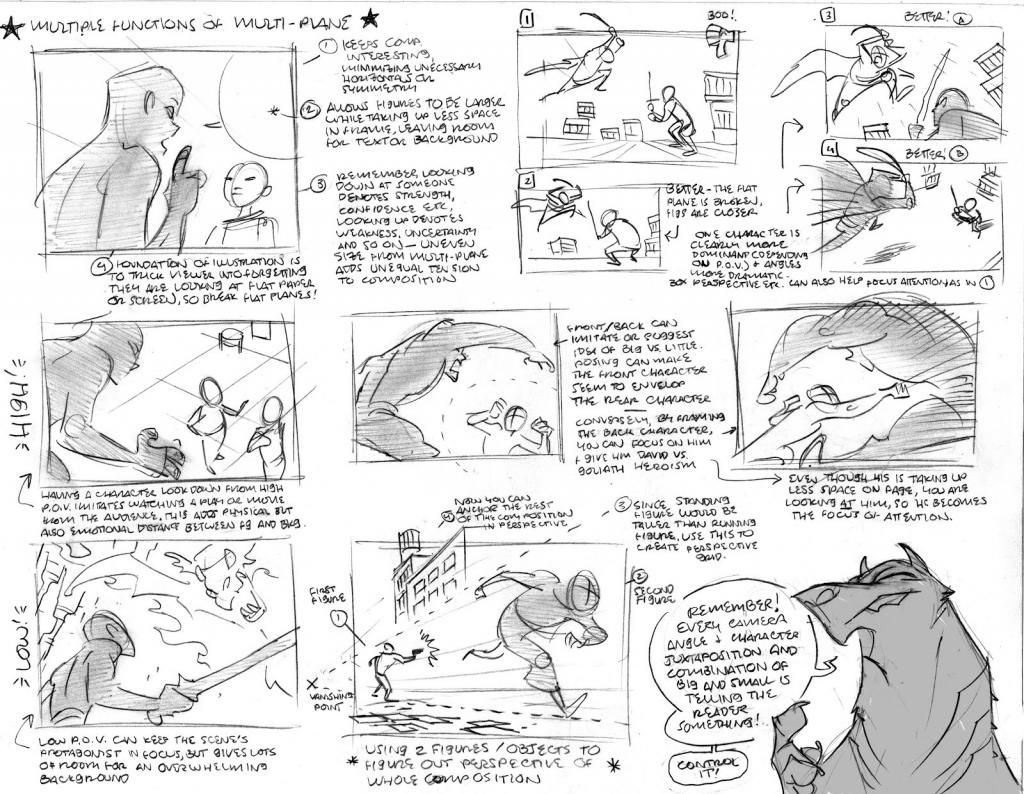 Dire: I don't want you to think that I'm fixating too much on your comic panel back there (because - don't get me wrong - it's very well drawn) but I came across this thing done by Ben Caldwell which might help you think differently about how you approach your comic panels.
